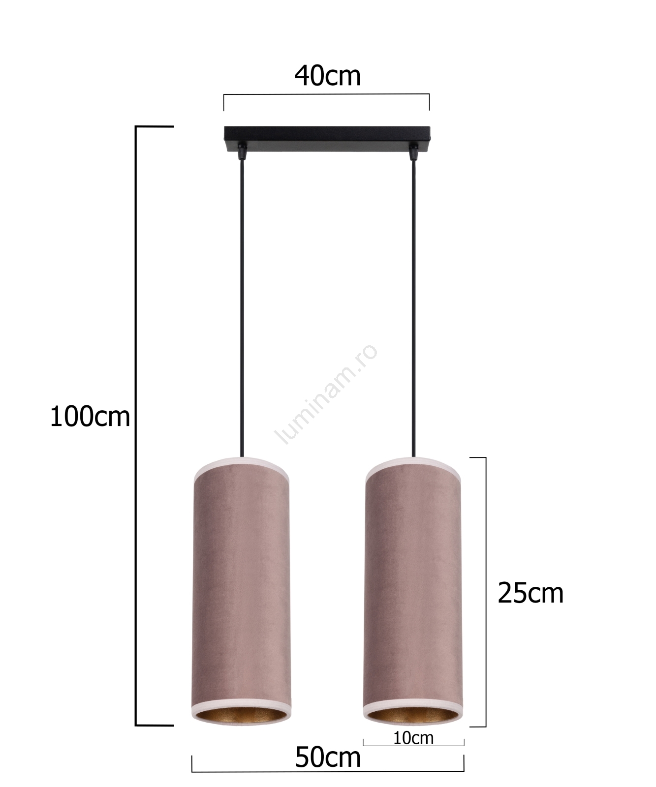 • Candelabru suspendat pe cablu AVALO 2xE27/60W/230V roz/maro cupru