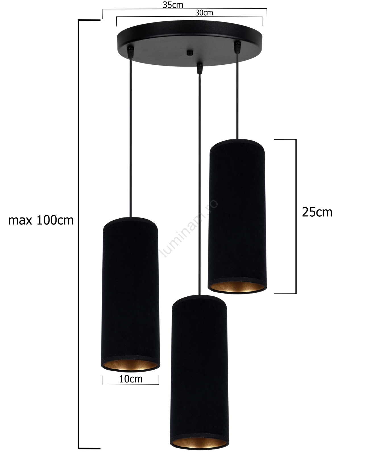 • Lustră pe cablu AVALO 3xE27/60W/230V d. 35 cm negru