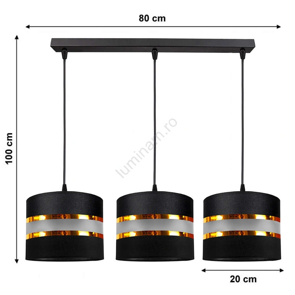 Lustră pe cablu CORAL 3xE27/60W/230V neagră