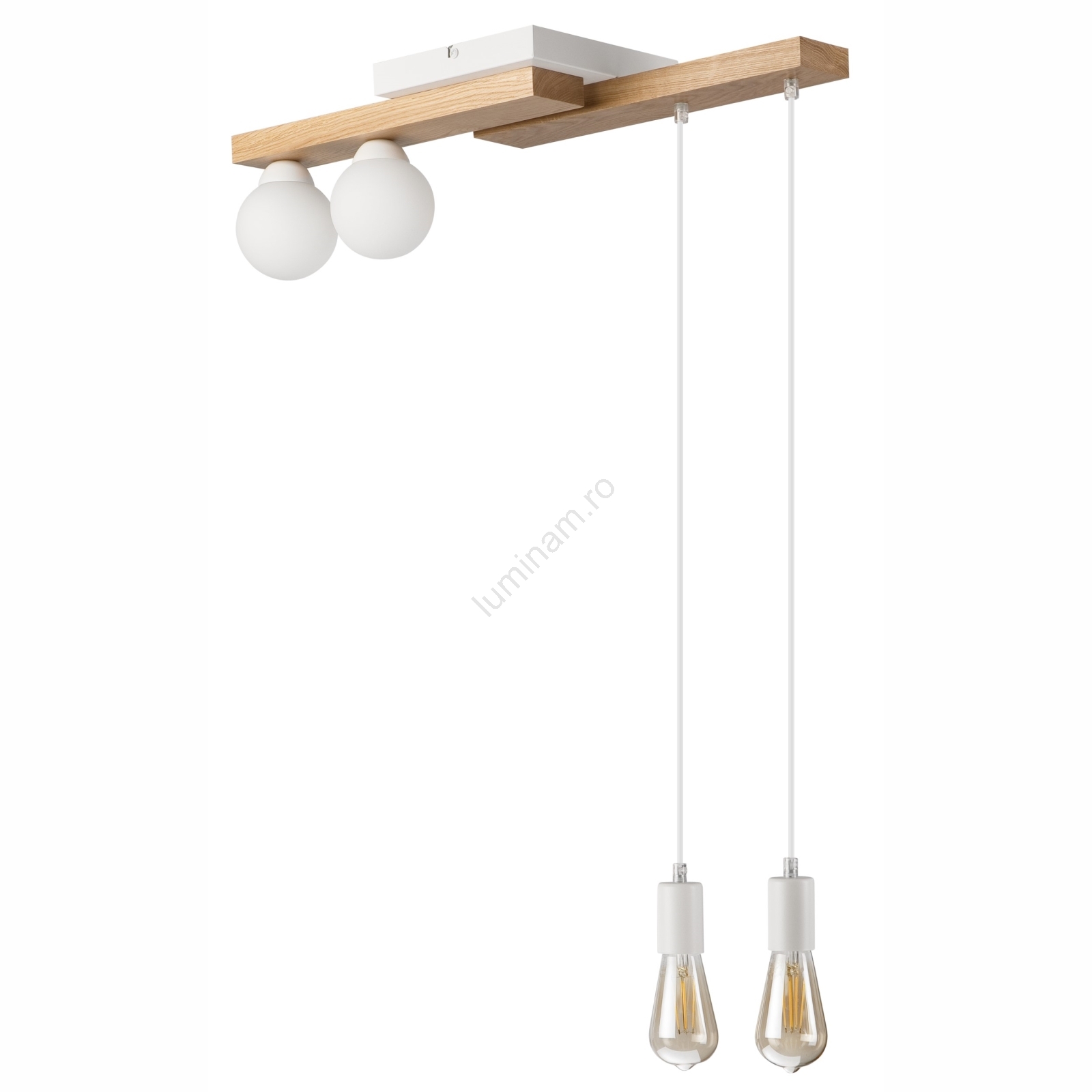 Lustră pe cablu CORTINA 2xE27/15W/230V + 2xG9/5W/230V alb/stejar