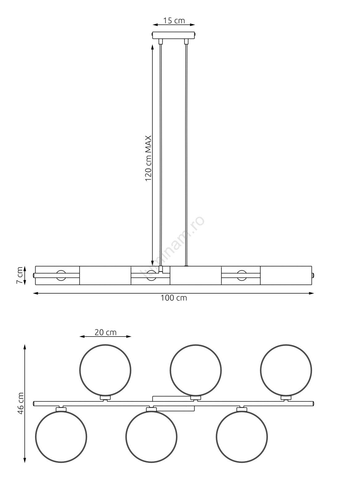 • Lustră suspendată pe cablu DRUMZ 6xE14/10W/230V neagră