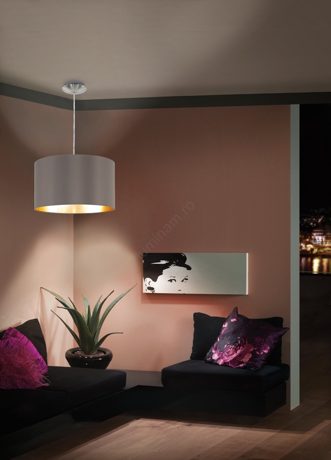 Articolul Lustră pe cablu Eglo 55269 MASERLO 1xE27/60W/230V maro este caracterizat printr-un aspect plăcut și funcțional.  Produsul funcționează cu becuri cu soclu E27. De aici se pot cumpăra alte becuri la prețuri avantajoase.
