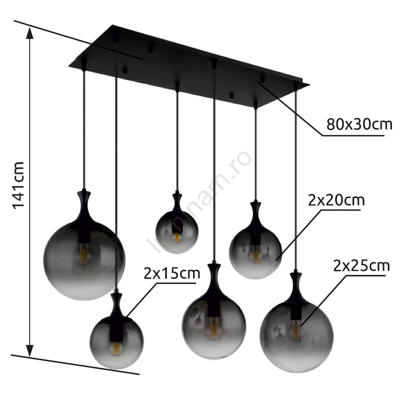 Lustră pe cablu Globo 6xE27/10W/230V negru