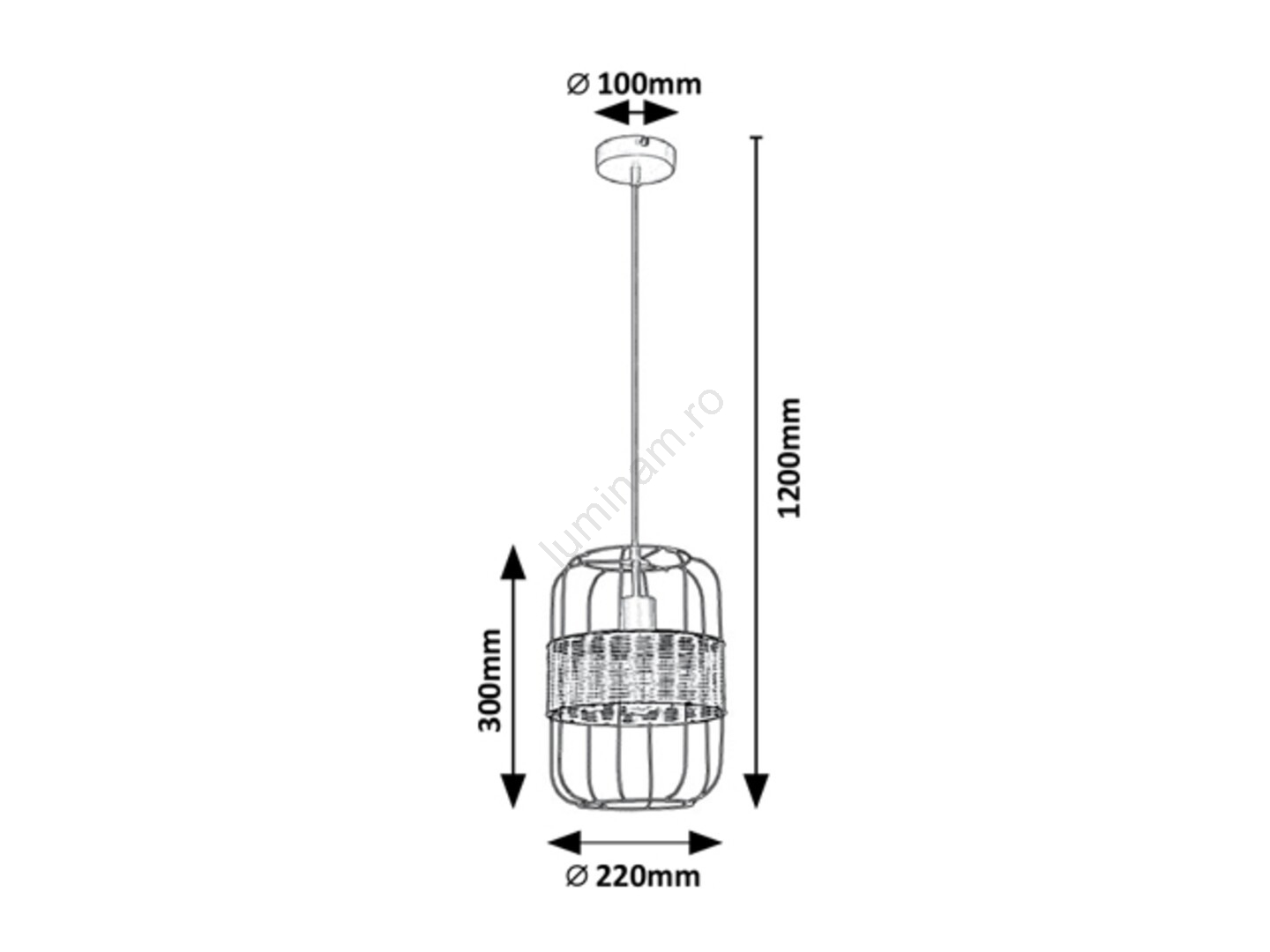 Lustra suspendată Indiana în stil industrial va deveni o piesă distinctivă în decorul sufrageriei, dormitorului, sălii de mese sau bucătăriei dumneavoastră moderne. Acest model negru mat, realizat din metal, este completat de un abajur suspendat în formă de cușcă și o decorațiune naturală țesută în jurul abajurului. Lampa Indiana poate fi fixată pe tavan cu ajutorul unei baze rotunde și decorative. Lampa suspendată poate fi utilizată cu un bec de până la 40W. Tipul soclului este E27. Pentru a crea o atmosferă intimă și primitoare, alegeți un bec care emite lumină albă caldă pentru acest model. Dimensiunile lămpii suspendate Indiana sunt următoarele: diametru 220 mm, înălțime 300 mm, distanța față de tavan 1.200 mm. Acest model este livrat fără sursă de lumină.