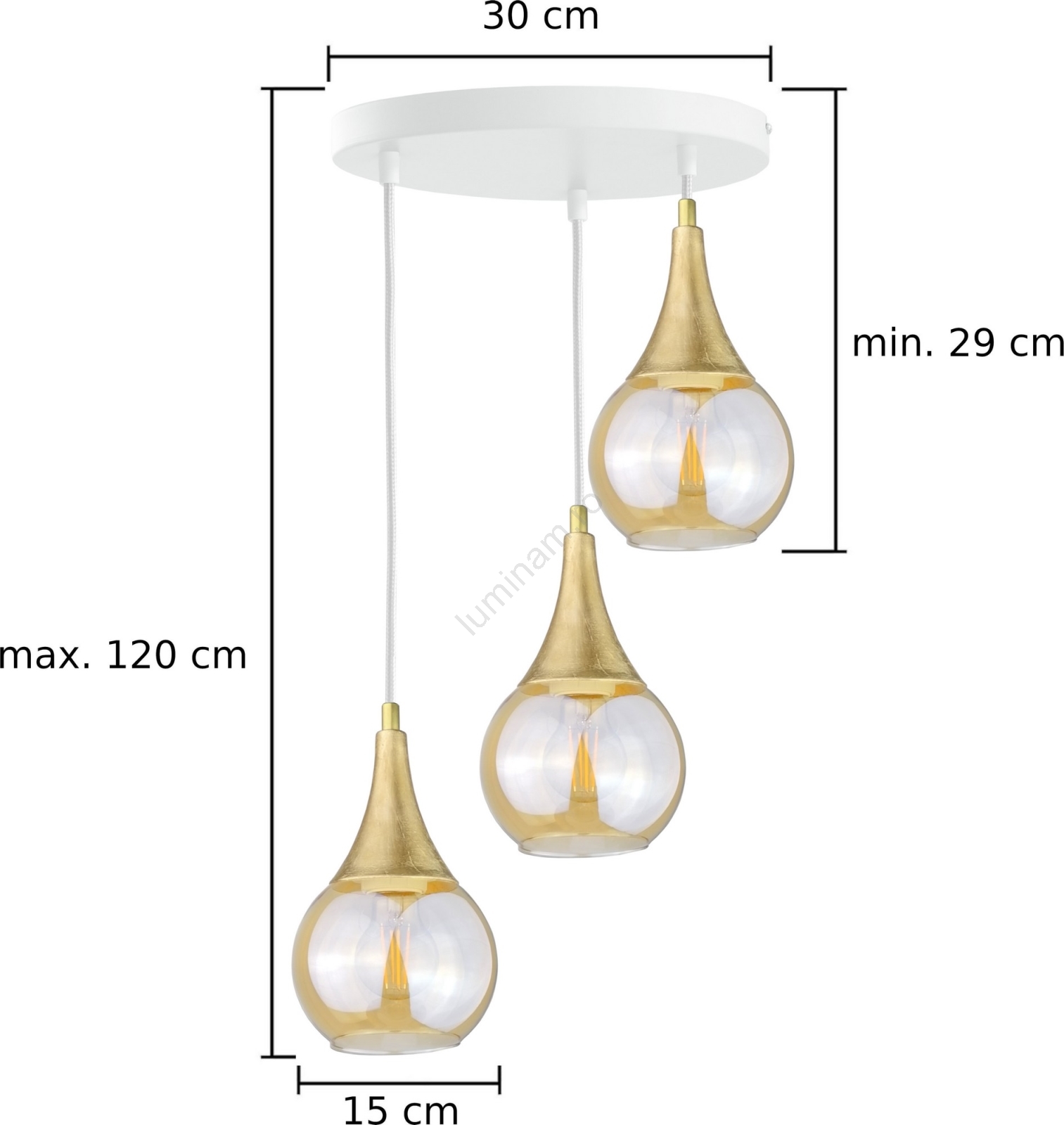 • Lustră pe cablu LACRIMA HONEY 3xE27/60W/230V d. 30 cm