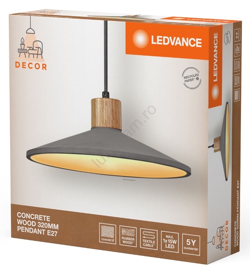 Lustră pe cablu Ledvance DECOR CONCRETE 1xE27/15W/230V d. 32 cm gri ciment