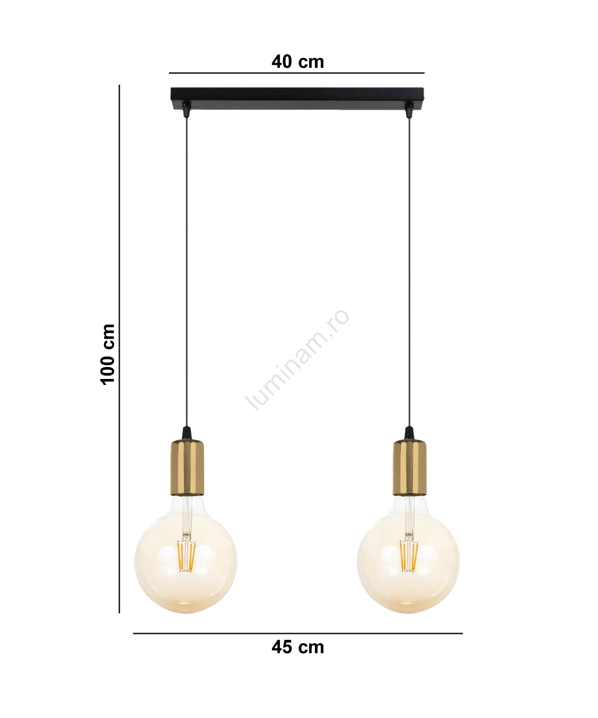 • Lustră pe cablu MIROS 2xE27/60W/230V neagră/aurie