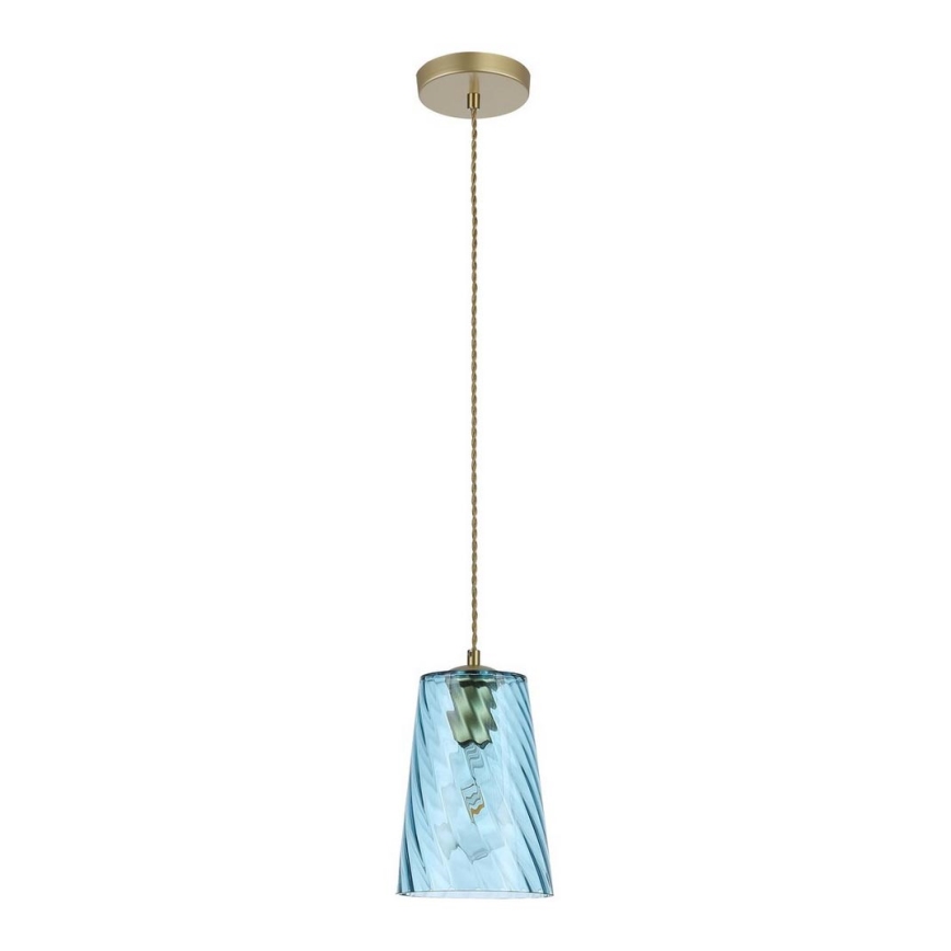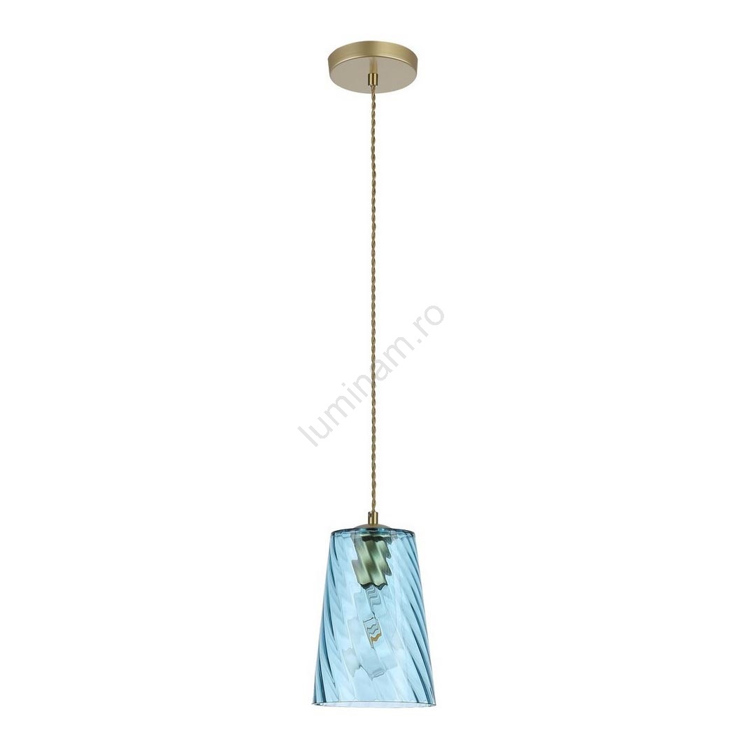În conformitate cu numele său, lampa suspendată modernă Azurine va umple camera de zi sau dormitorul dumneavoastră cu o strălucire azurie, cristalină. Lampa este fabricată din metal și sticlă, într-o combinație elegantă de culori aurii și albastre; corpul lămpii este conectat la o bază decorativă rotundă aurie printr-un cablu textil. Suprafața ondulată a abajurului alungit în formă de clopot evocă marea. Lampa Azurine poate fi utilizată cu un bec de până la 40W, cu soclu E27. Pentru a îmbunătăți atmosfera intimă a locuinței, alegeți o sursă de lumină alb cald pentru această lampă. Dimensiunile lămpii suspendate Azurine sunt următoarele: diametrul abajurului este de 150 mm, distanța de la tavan 1750 mm, diametrul de instalare 120 mm. Acest model este livrat fără sursă de lumină.