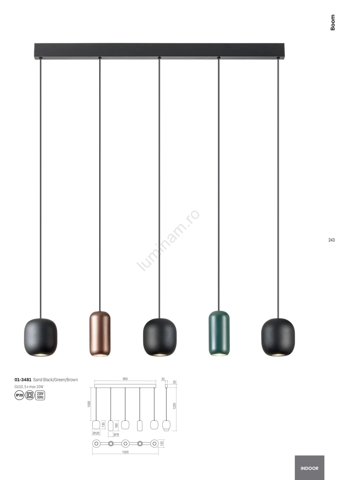 Lustră pe cablu Redo 01-3481 BOOM 5xGU10/10W/230V negru/verde/maro