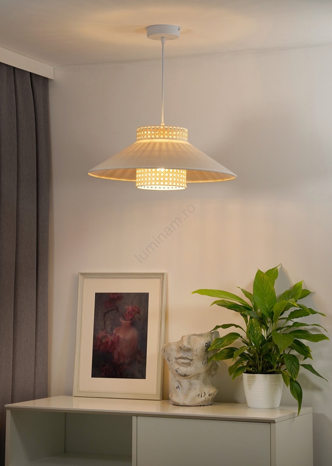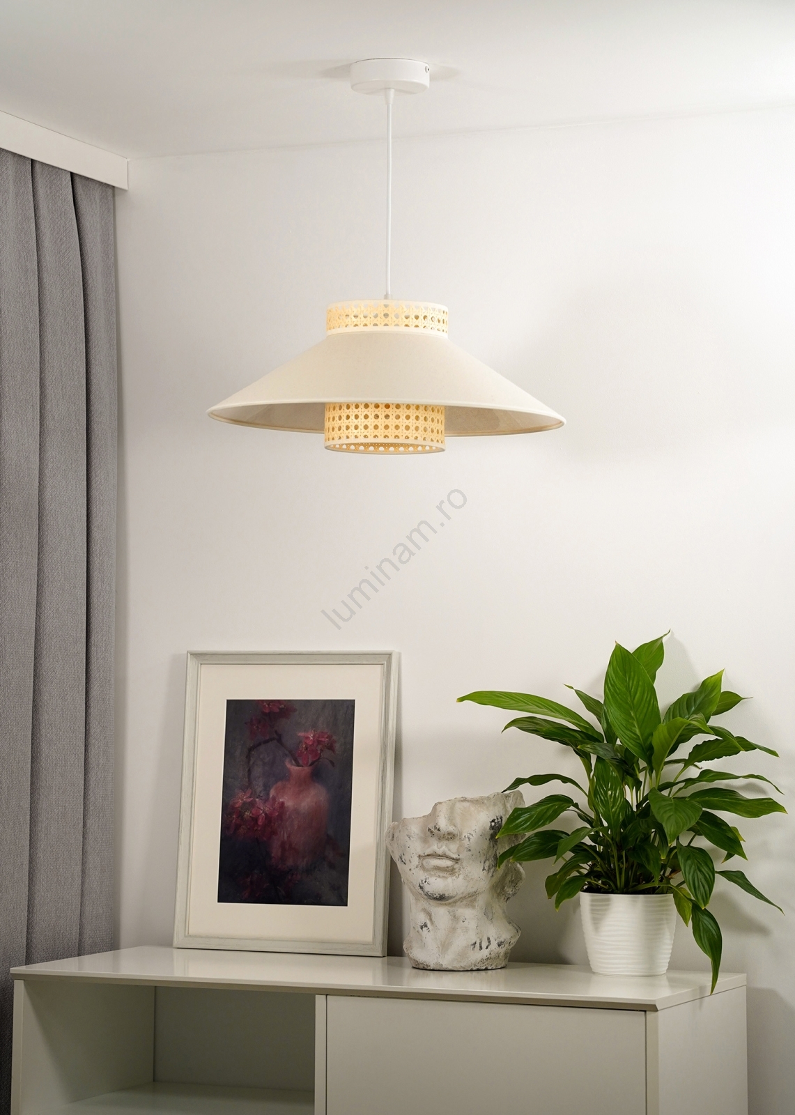 Lustră pe cablu RIO Duolla RATTAN 1xE27/15W/230V d. 45 cm bej/ratan