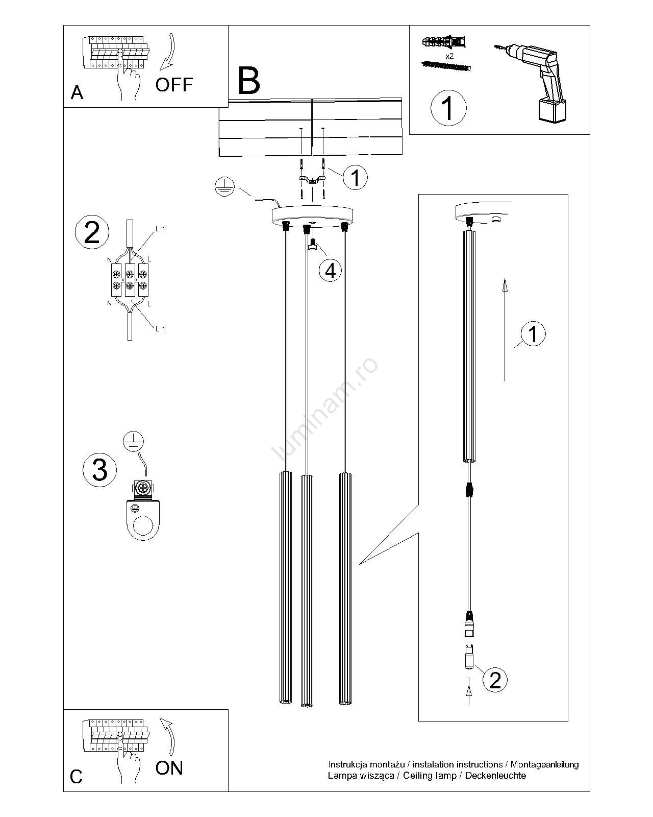 • Lustră pe cablu ARCHE 3xG9/8W/230V negru
