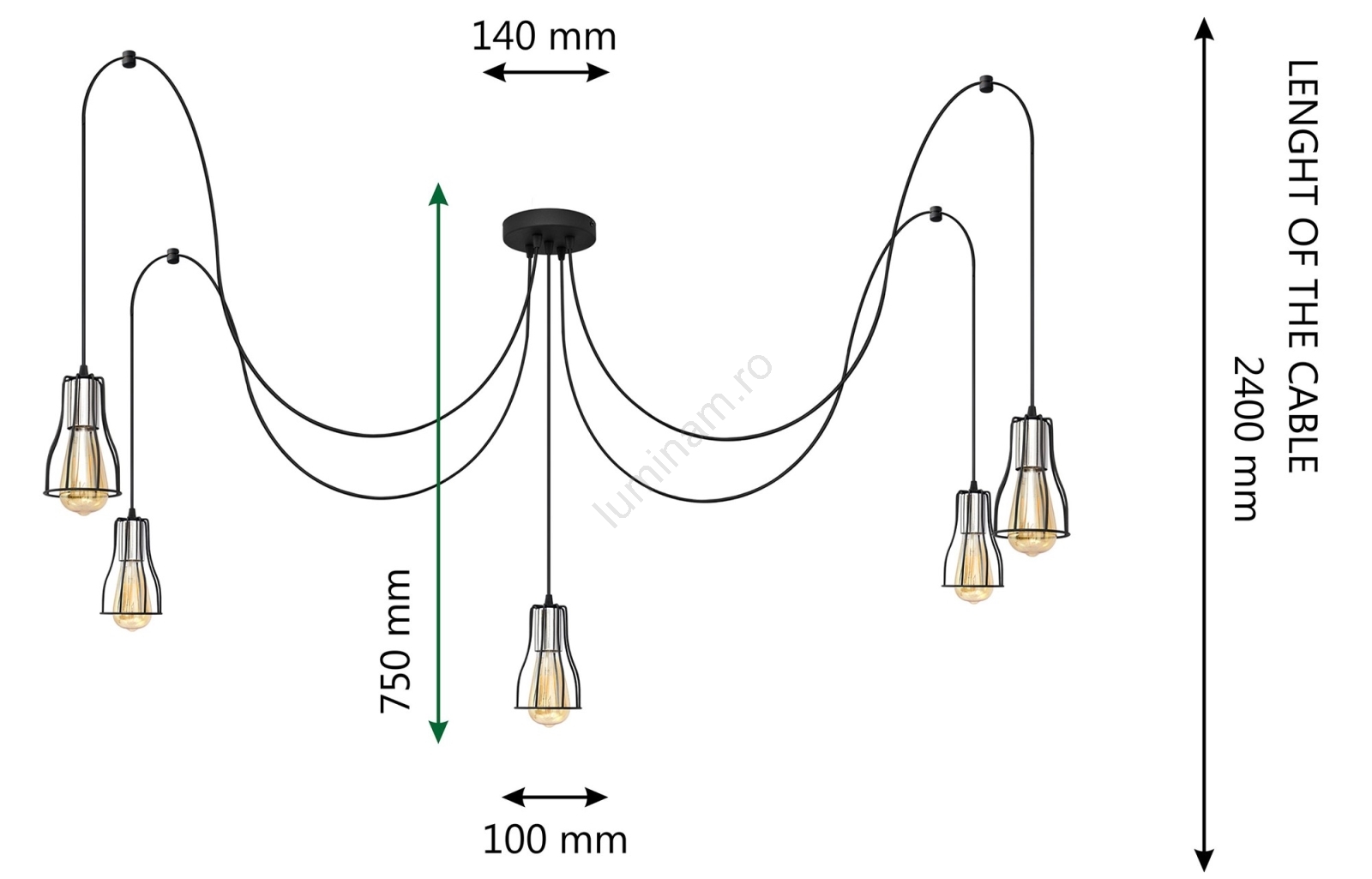 • Lustră pe cablu TUBE LONG 5xE27/10W/230V negru
