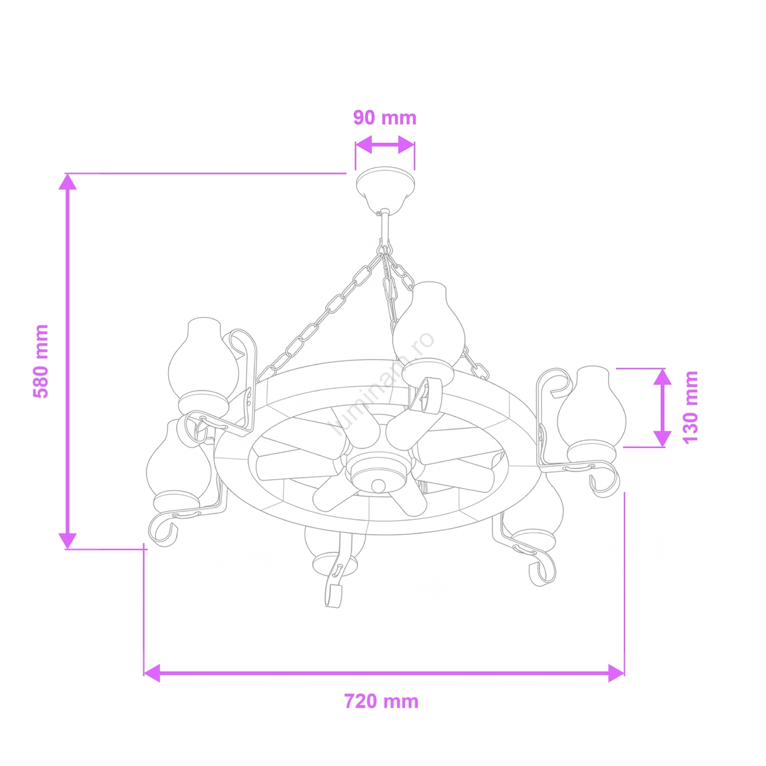 • Brilagi - Candelabru suspendat pe lanț ROATA 6xE14/40W/230V Ø 70 cm fag