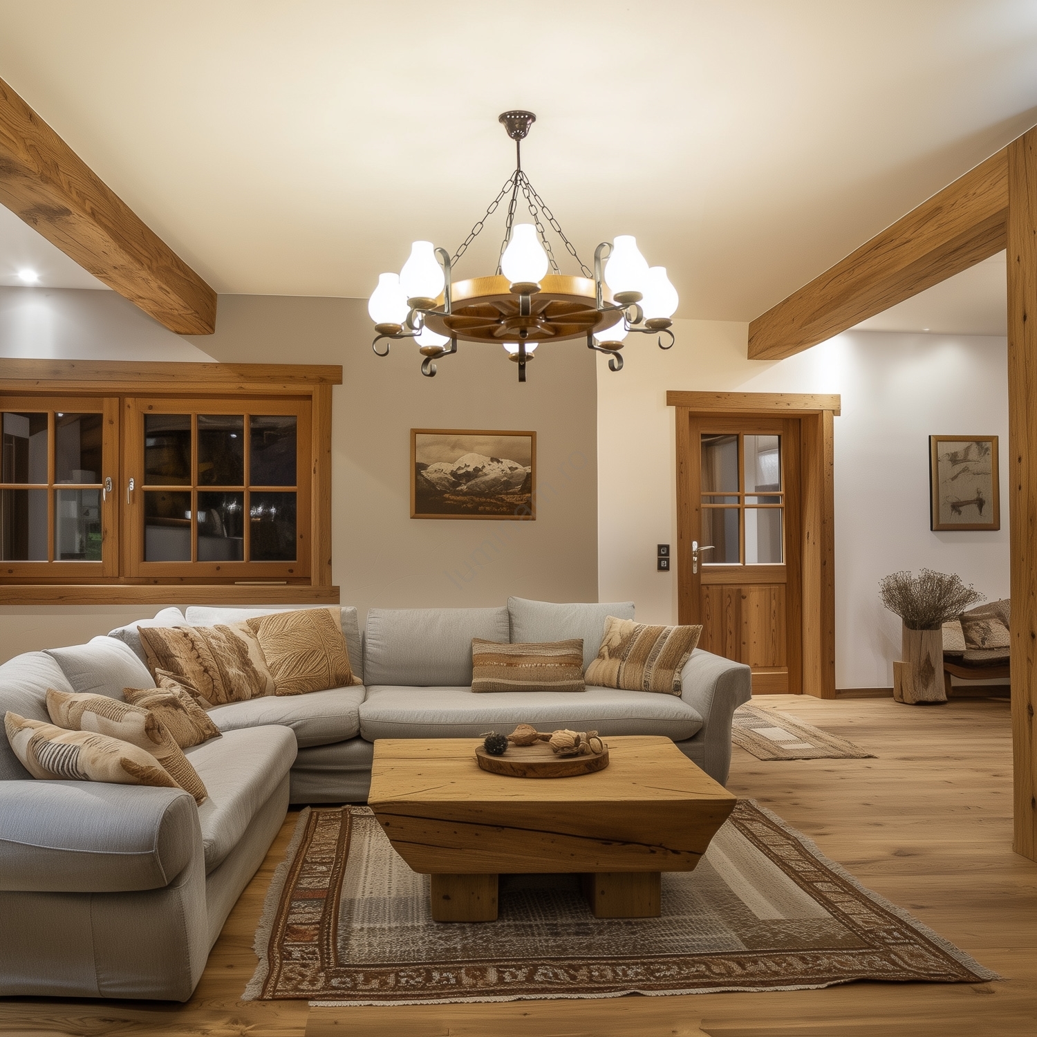 Camera de zi și dormitor, Corpuri de iluminat, Iluminat de interior, În funcție de destinație, Lustre, Lustre, Lustre Brilagi, Lustre din lemn, Lustre rustice