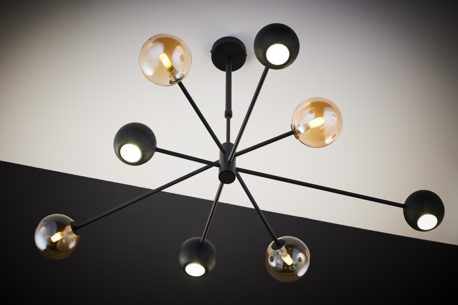 • Lustră pe tijă Jupiter 1973 MOKA 4xGU10/10W/230V + 4xG9/10W/230V auriu/negru/transparent