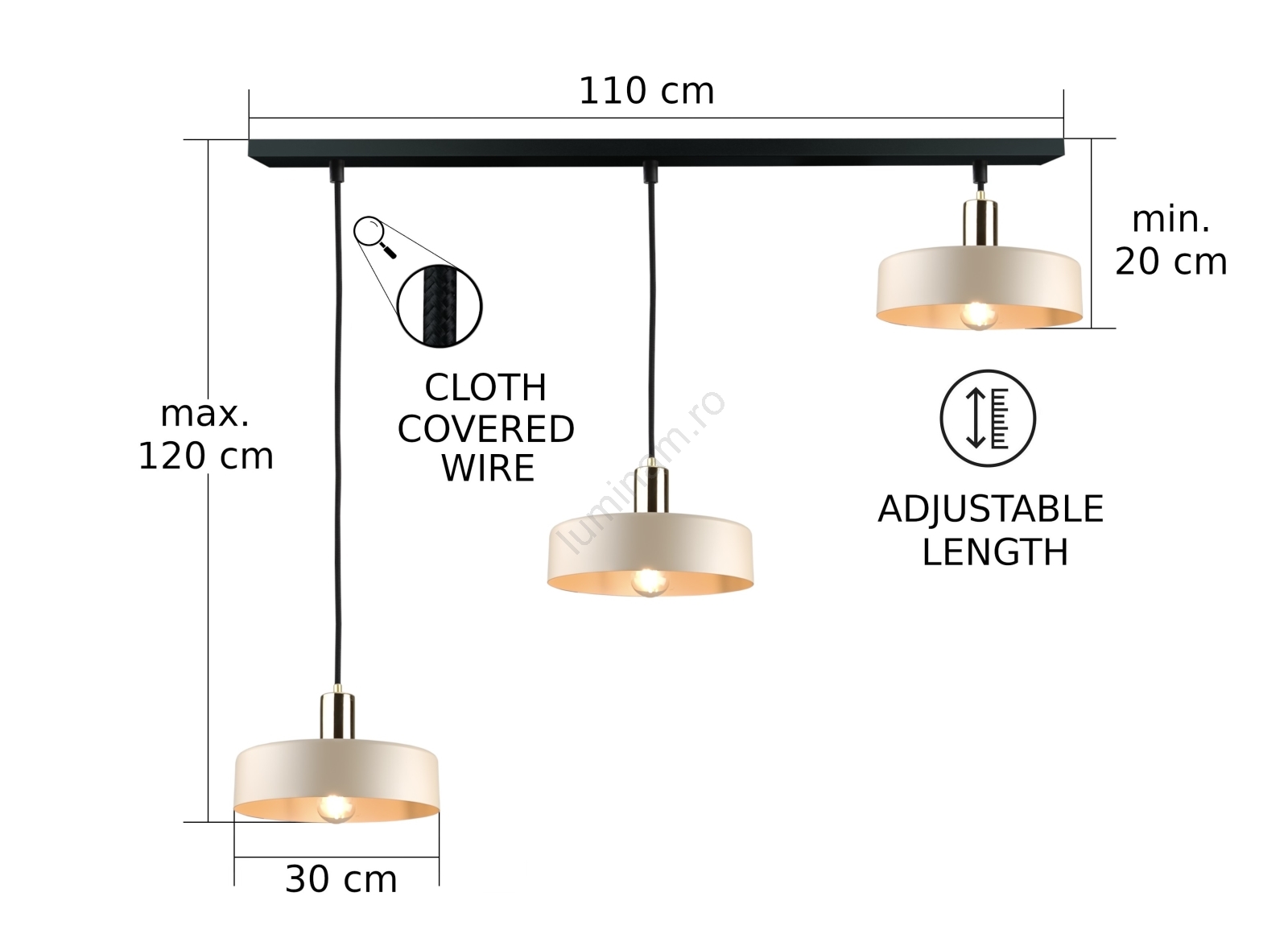 • Lustră suspendată LATTE 3xE27/60W/230V bej/negru/auriu