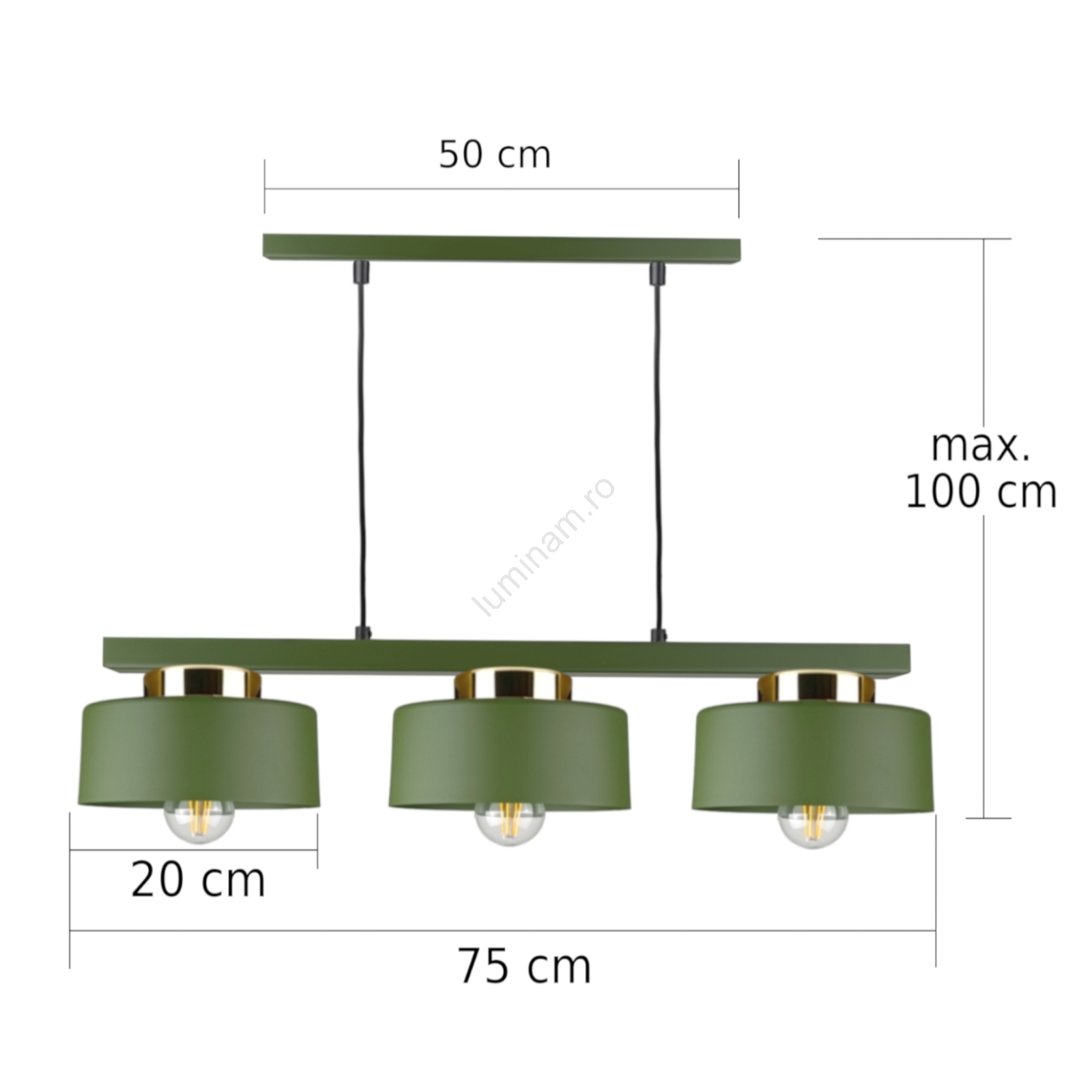 • Lustră suspendată pe cablu IGNIA, 3 x E27, 60 W, 230 V, verde/auriu