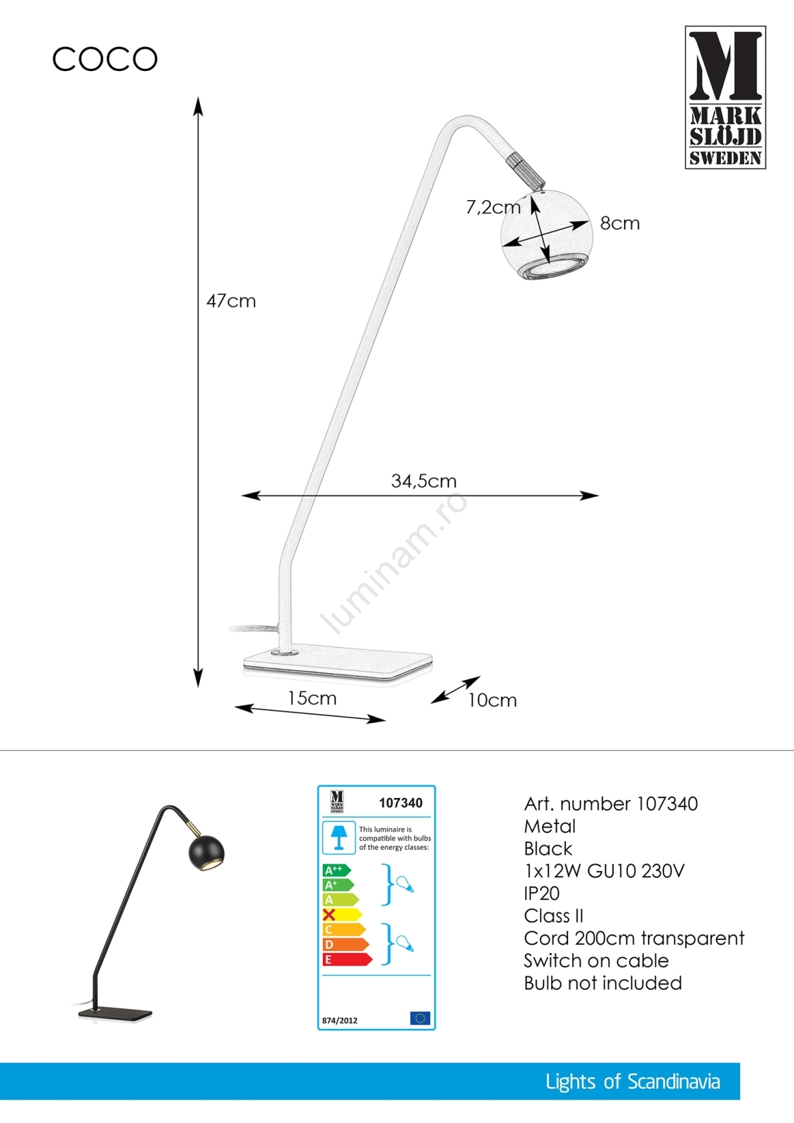 • Markslöjd 107340 - Lampă de masă COCO 1xGU10/12W/230V