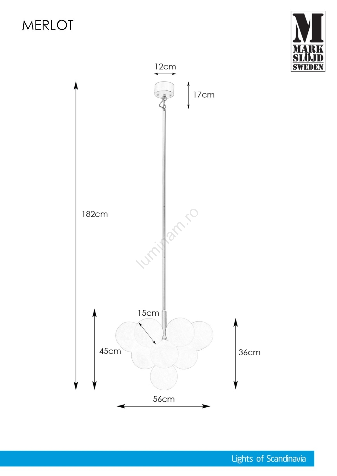 • Markslöjd 107911 - Candelabru MERLOT pe tijă, 13xG9/20W/230V, Ø 56 cm, alb/negru