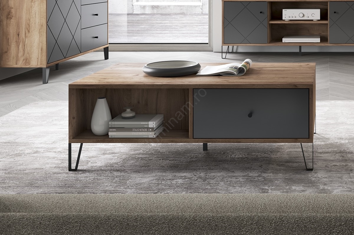 • Măsuță de cafea SULA, stejar craft/negru