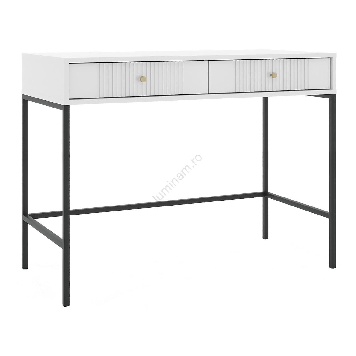 • Are două sertare decorate cu caneluri verticale pentru un efect vizual rafinat.
