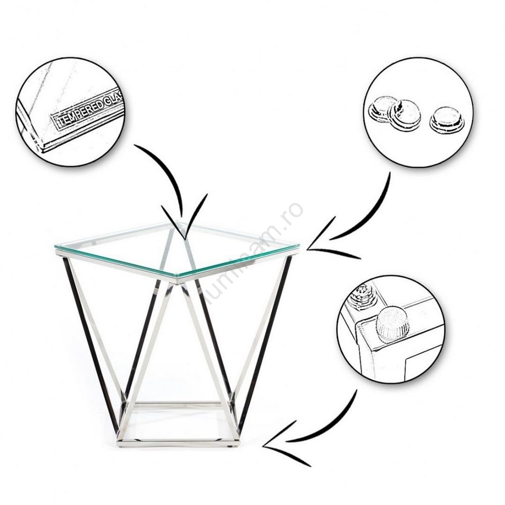 Măsuță de cafea DIAMANTA 50x50 cm crom/transparentă