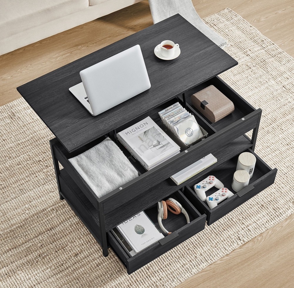 • Masă de cafea NYRO cu blat ridicabil, neagră