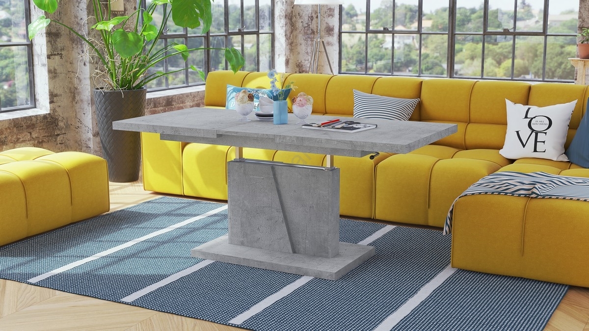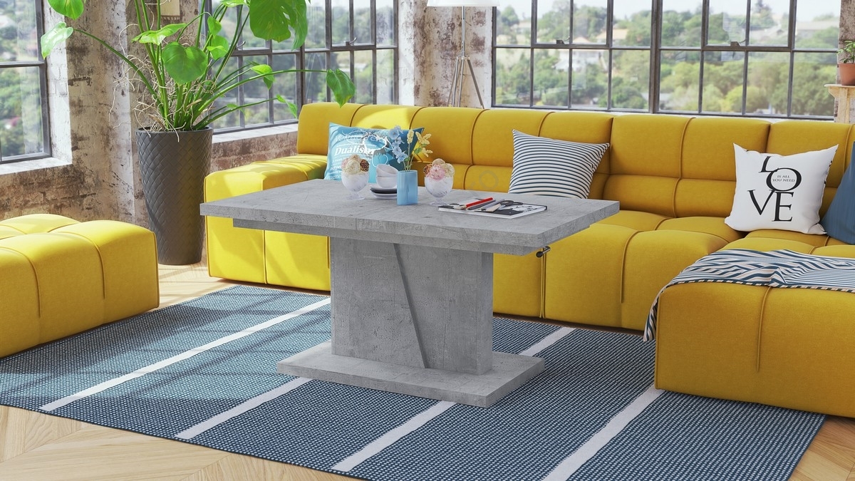 • Masă extensibilă de cafea/servire NINO cu blat cu mecanism de ridicare, beton gri
