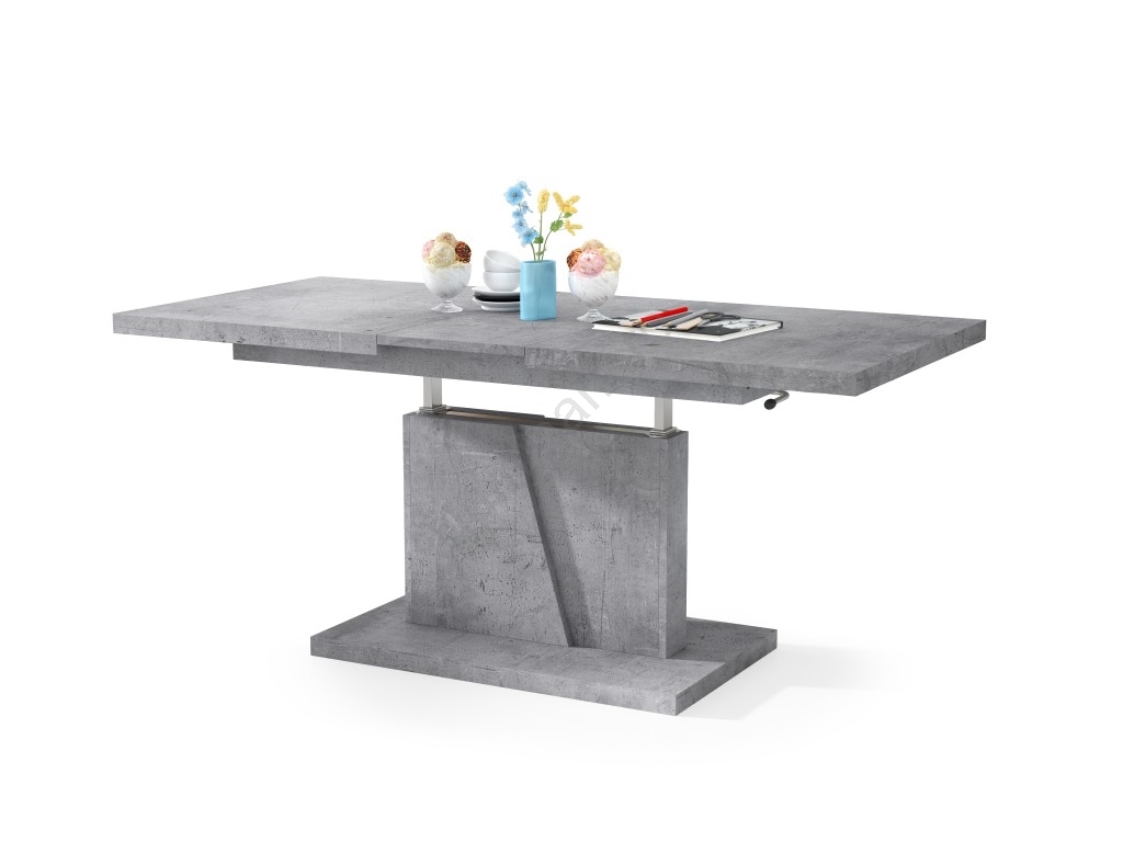 Masă extensibilă de cafea/servire NINO cu blat cu mecanism de ridicare, beton gri