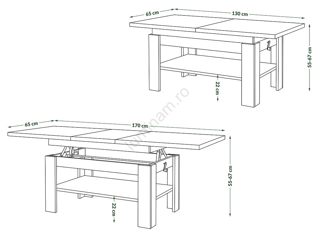 • Blatul poate fi ridicat până la înălțimea de 67 cm.