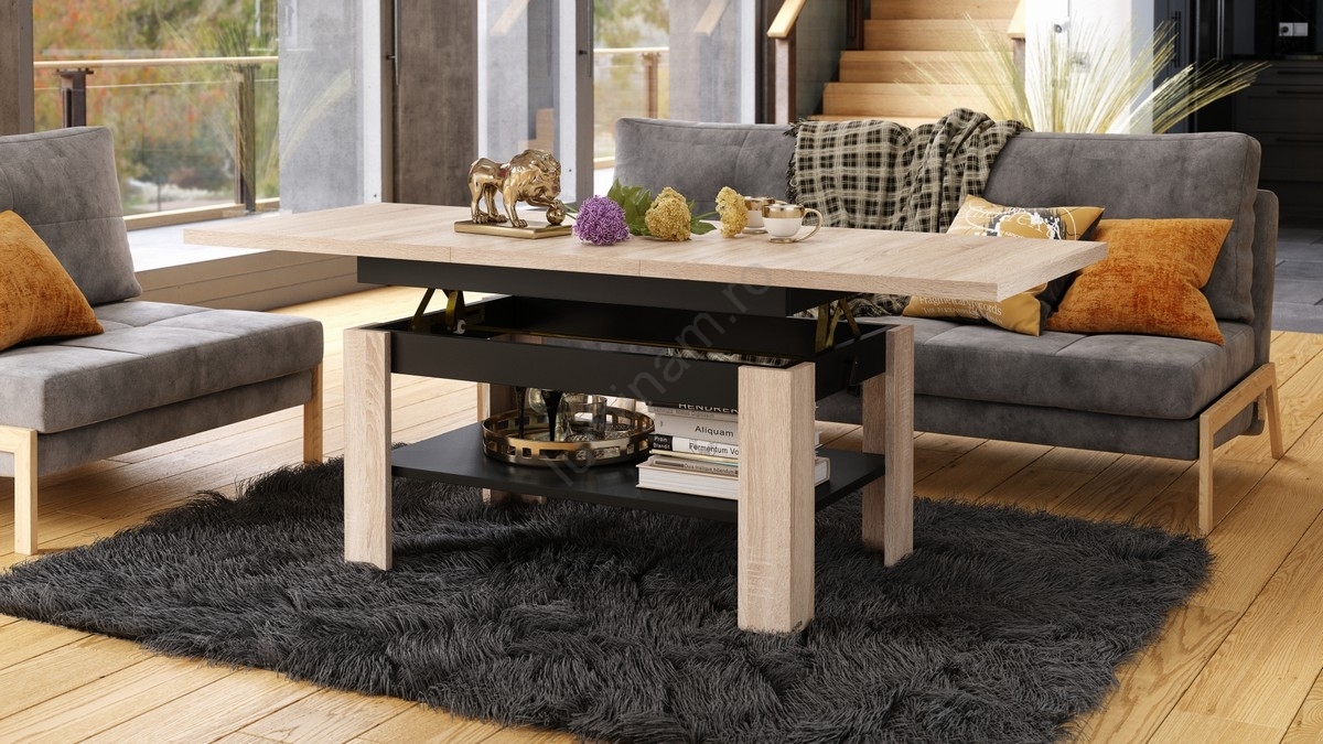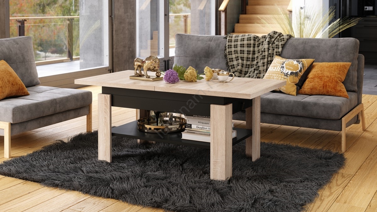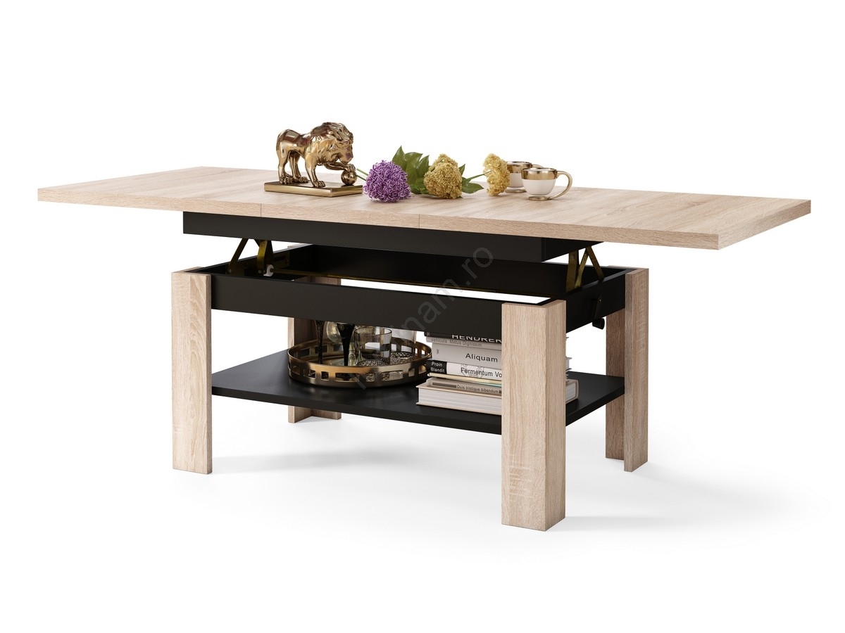• Masă de cafea extensibilă ROY cu blat rabatabil și mecanism de ridicare