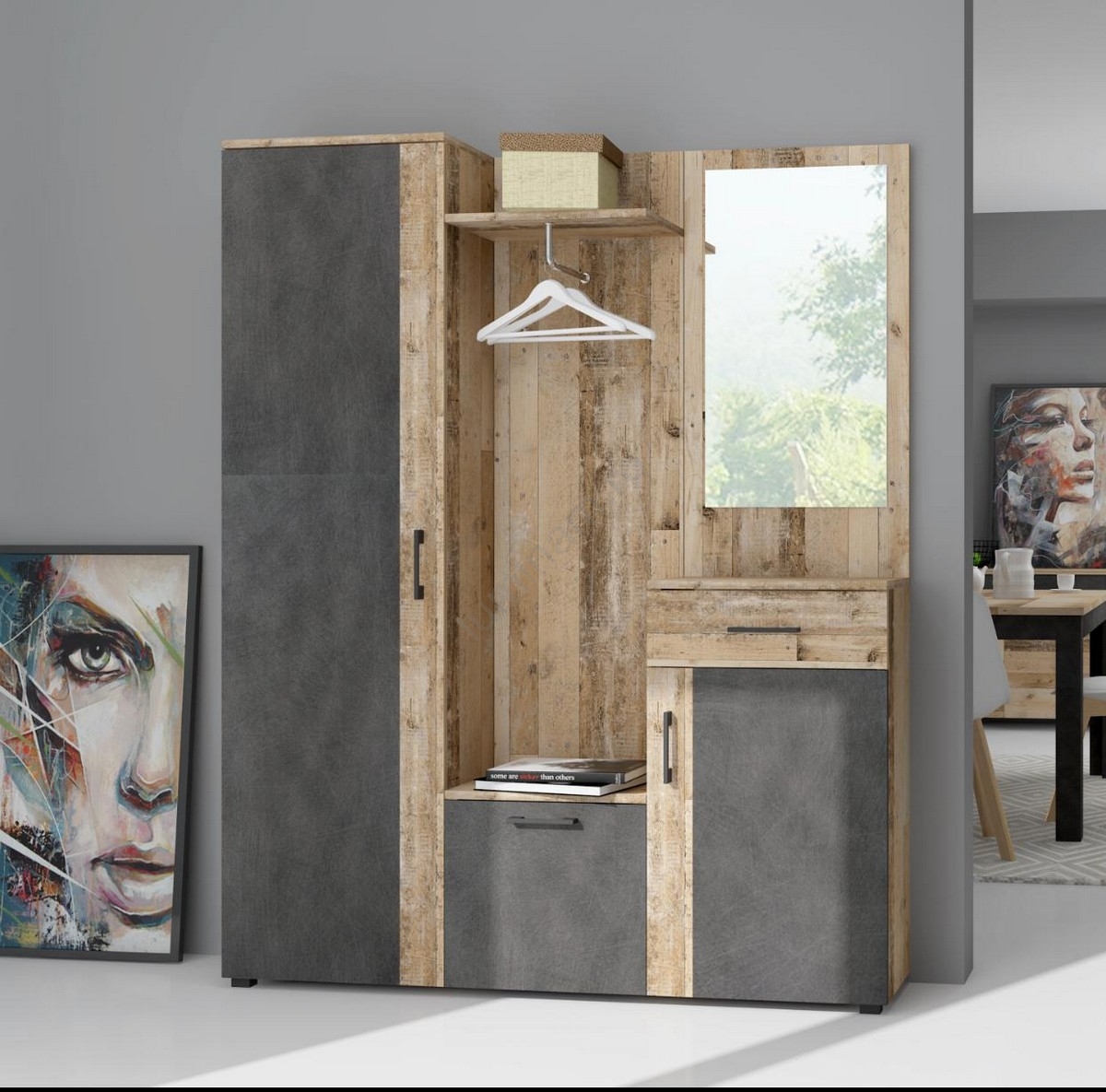 • Panou pentru hol NOLAN cu oglindă, stejar artisan/alb
