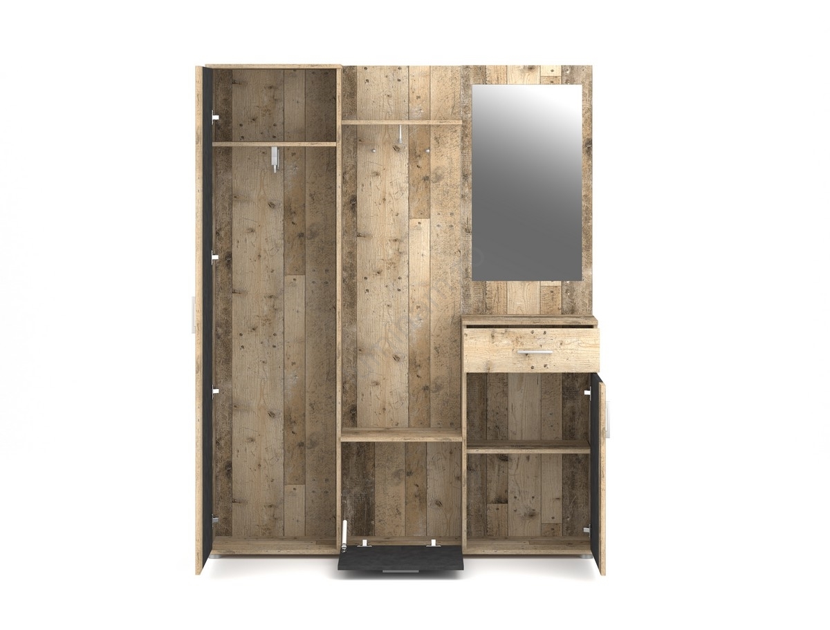 • Rafturi, cârlige, bară pentru haine și o oglindă mare oferă exact ceea ce aveți nevoie.