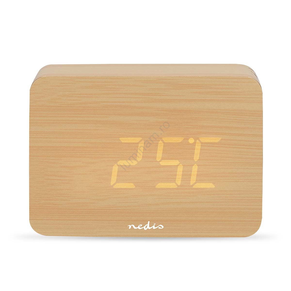 Ceas deșteptător digital din lemn cu afișaj LED și termometru, 5V/3xAAA