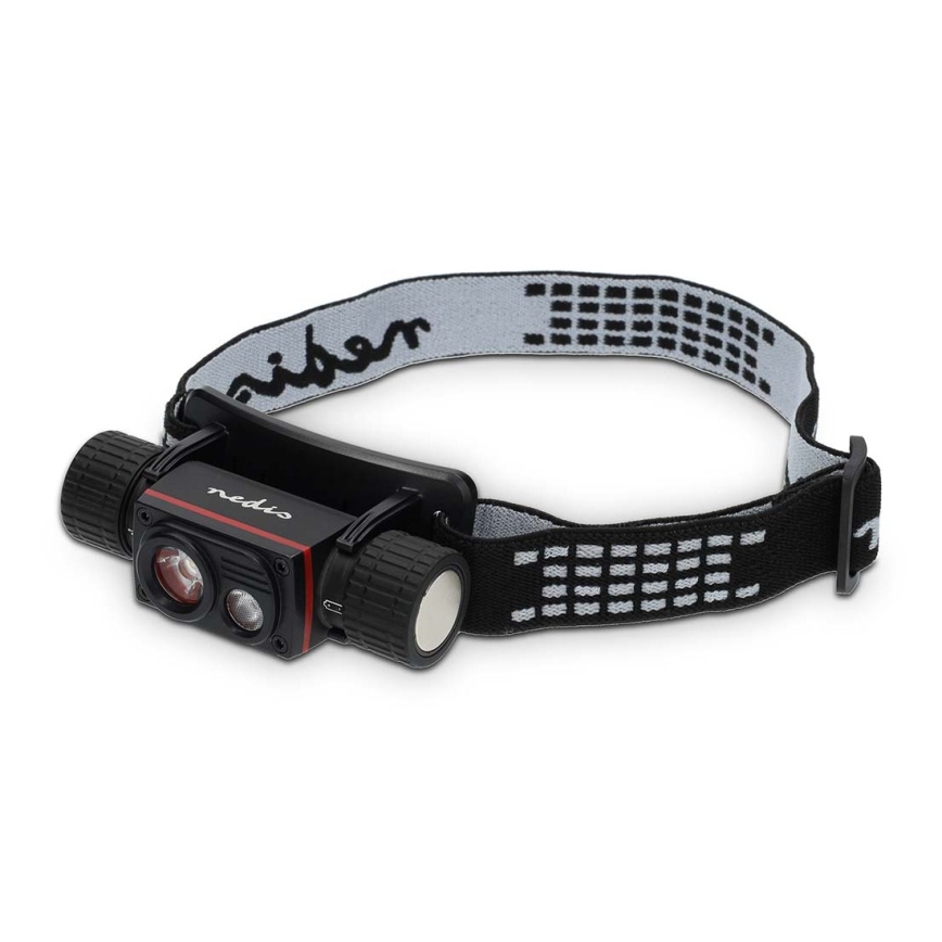 Frontală LED reîncărcabilă din aluminiu, cu reglare a intensității, 10W/5V, 2200 mAh, IPX8, negru