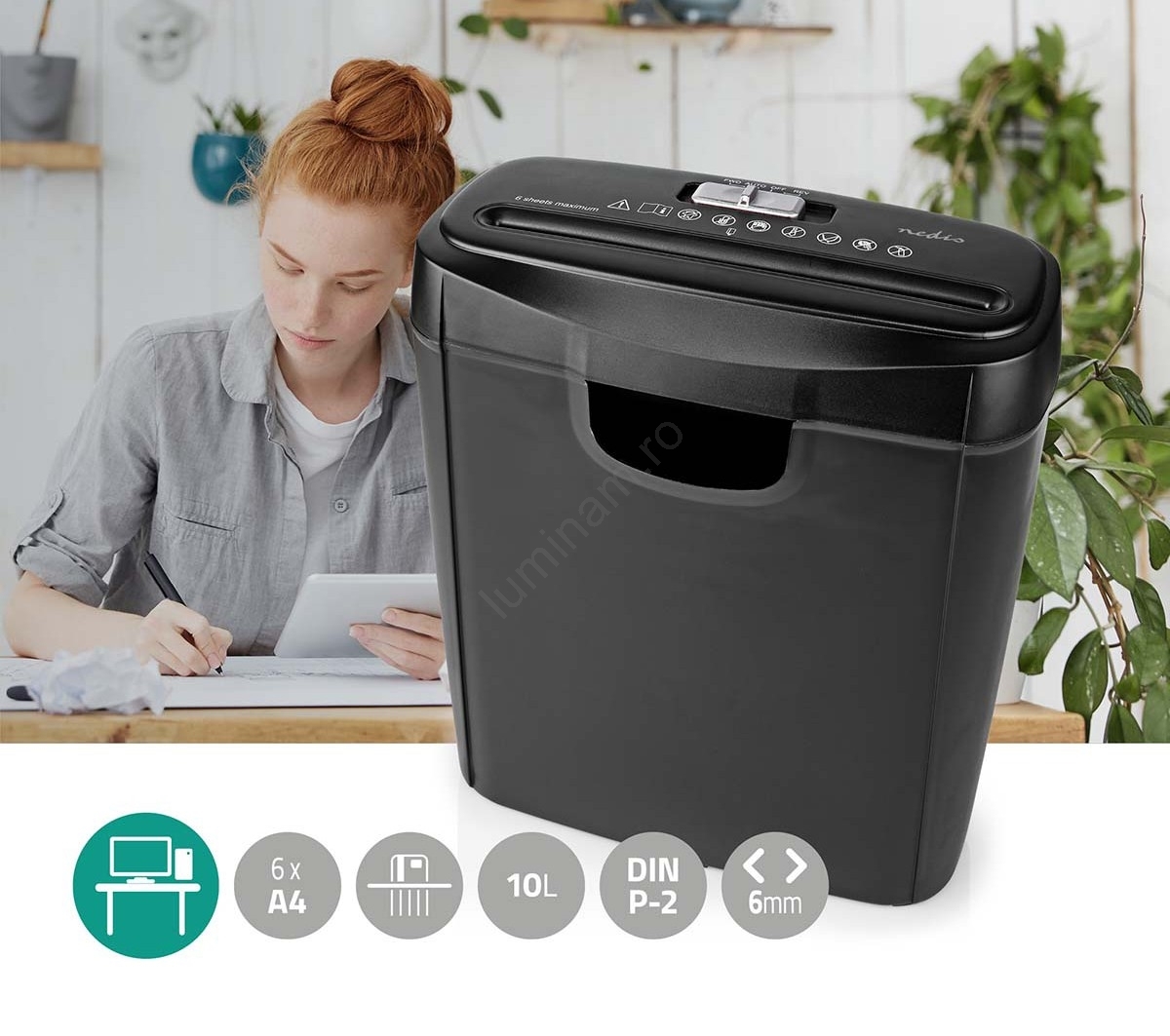 Distrugător de documente A4, capacitate 10 l, 230V, negru