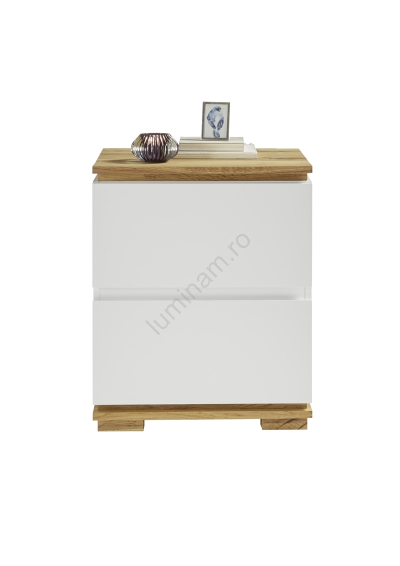 • Partea superioară și inferioară a noptierei, cu decor din lemn, vor aduce dormitorului dumneavoastră o notă naturală.