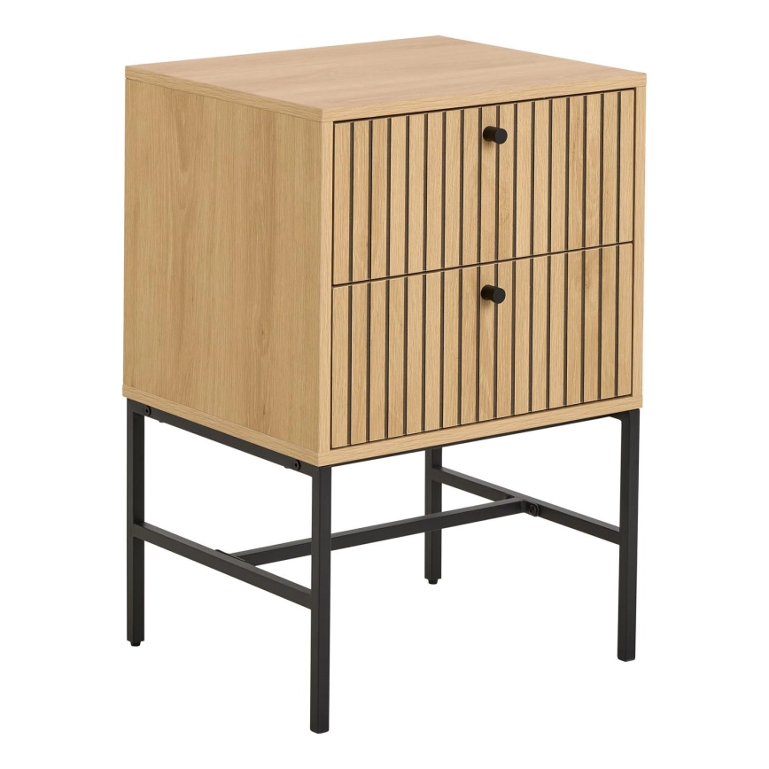 • Această noptieră cu aspect de stejar și față cu lamele va aduce locuinței dumneavoastră stil și funcționalitate.