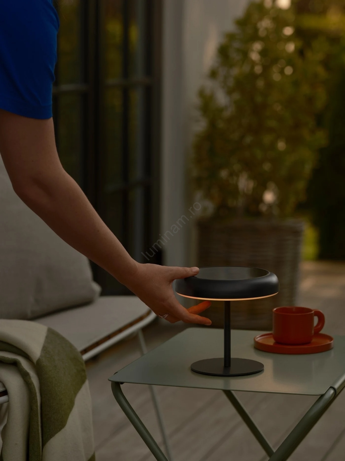 • Lampă de masă solară portabilă, elegantă, de culoare neagră.