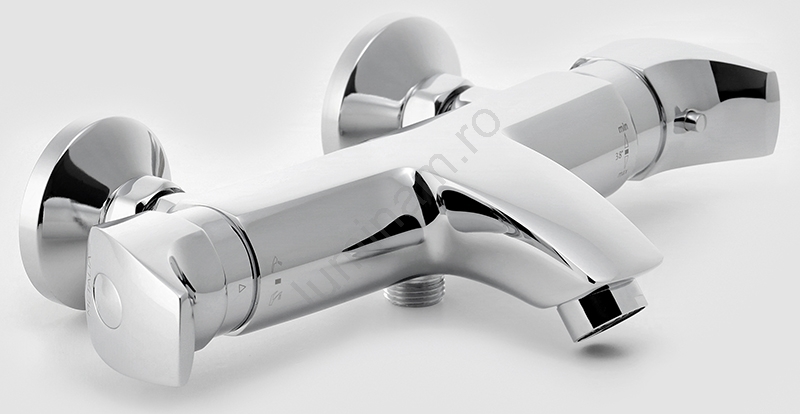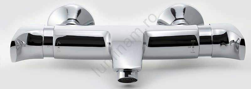 • Termostat pe partea dreaptă, reglarea debitului pe partea stângă.