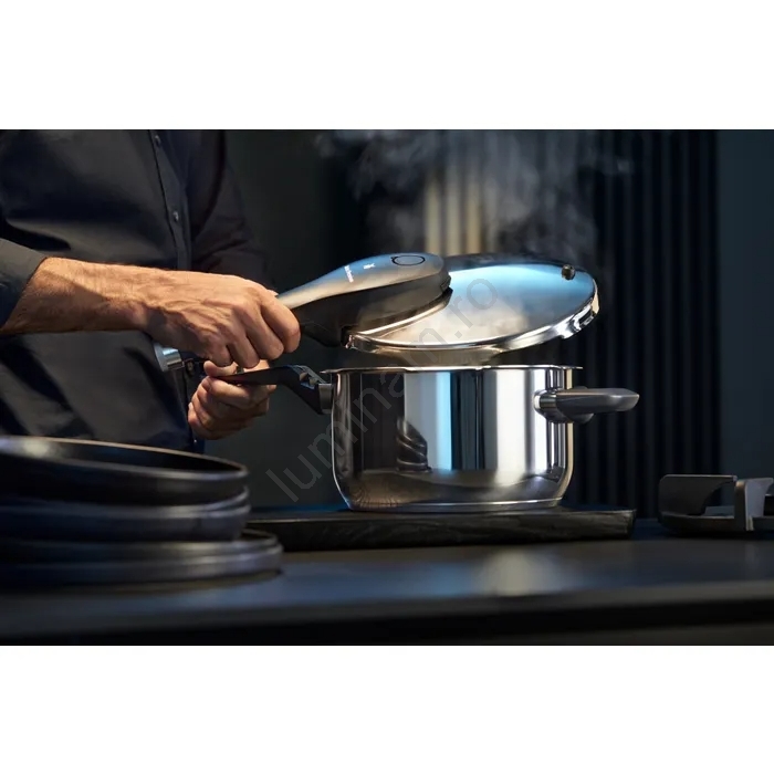 • Oala sub presiune impresionează prin timpi de gătit incredibil de scurți și rezultate intense.