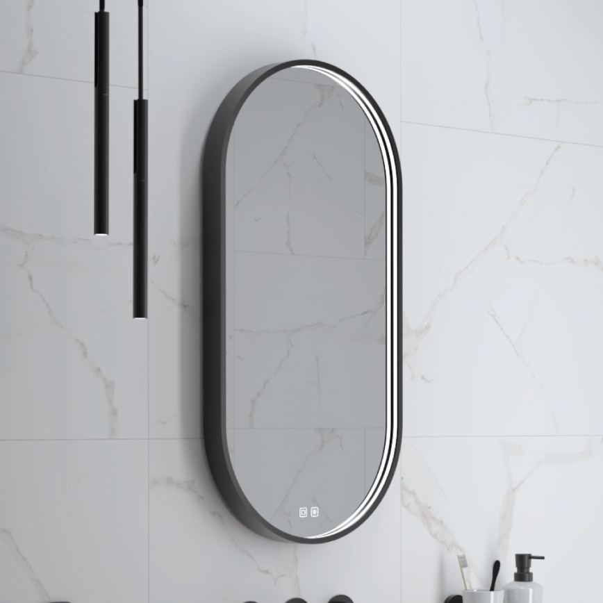 NIMCO ZPC 32002LVX-90 - Oglindă de baie cu iluminare LED integrată, reglabilă, 25W, 230V, 3000-6500K, 80x40 cm, negru mat, IP44