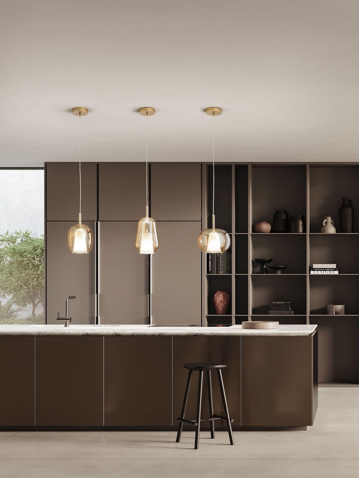 Ondaluce - Lustră suspendată pe cablu THELMA, 1xE27/15W/230V, Ø 25 cm, auriu/bej fumuriu