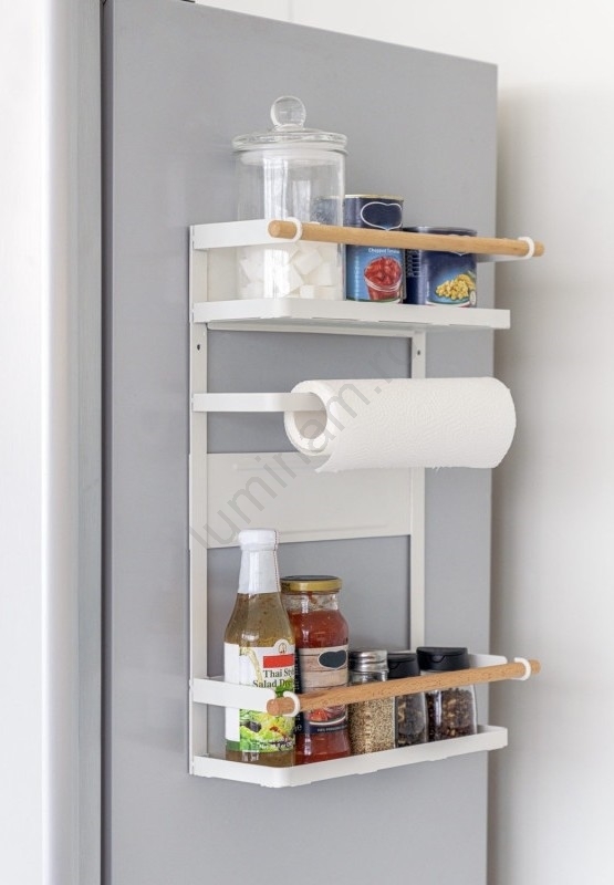• Datorită magneților puternici de pe spate, organizatorul de bucătărie poate fi fixat pe orice suprafață metalică, de exemplu, pe partea laterală a unui frigider, aragaz sau grătar.
