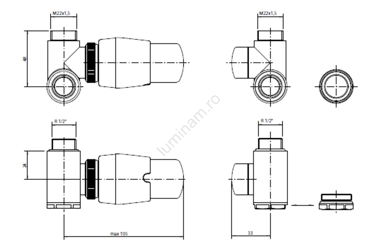 • În funcție de amplasarea capului termostatic, setul este disponibil în versiuni pentru partea dreaptă sau stângă.