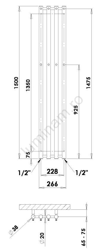 P.M.H. R2W - Radiator baie tip scară ROSENDAL, 350 W, 150 cm, alb
