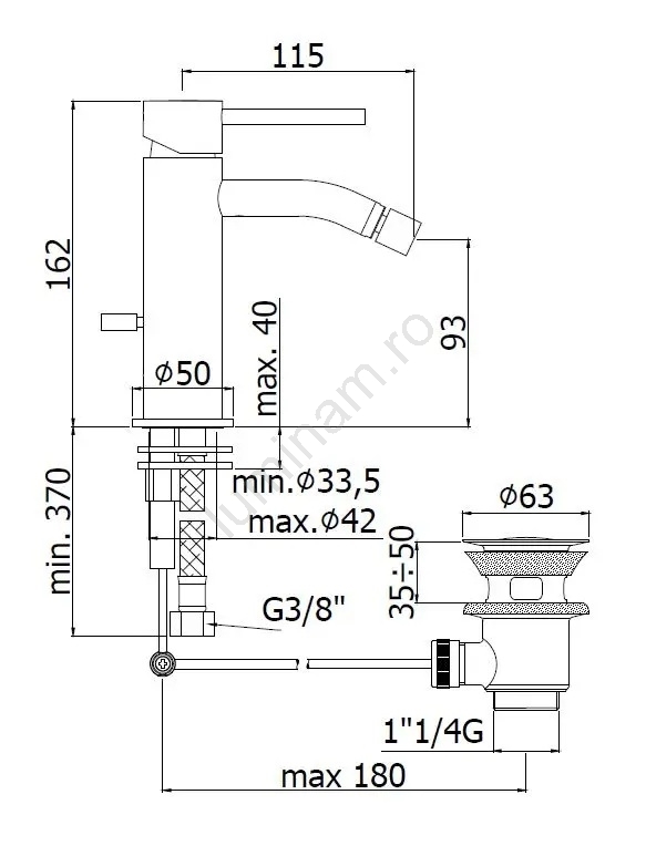 • Baterie pentru bideu montată pe blat Paffoni LIGHT, cu ventil de scurgere.