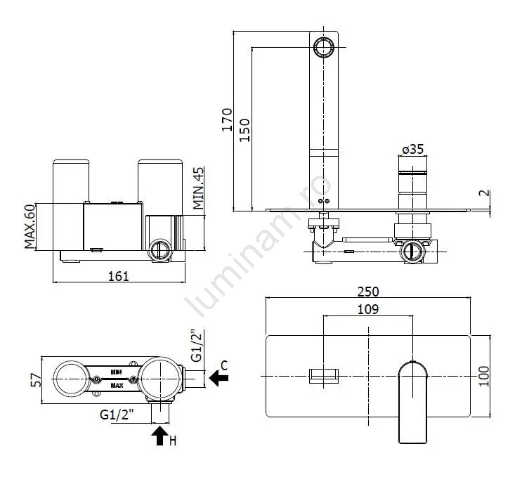 • Baterie pentru lavoar încastrată, ideală pentru o baie modernă.