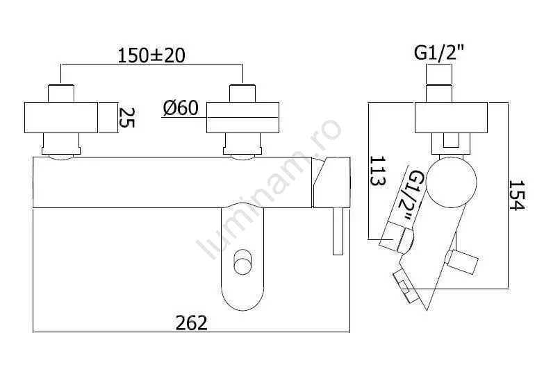 • Baterie monocomandă de cadă, montată pe perete, cu finisaj auriu elegant.