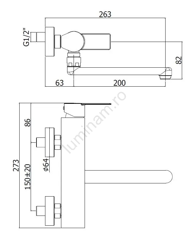 • Comandă cu pârghie pentru reglarea facilă a debitului și a temperaturii apei.